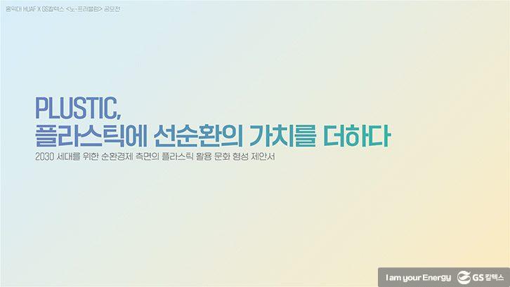 지난 10월부터 GS칼텍스가 후원하고 홍익대학교 광고홍보축제 HUAF팀이 주최한 ‘노-플라블럼 공모전’이 개최되었습니다. 전국 대학생들을 대상으로 플라스틱에 대한 인식 제고 및 문제 해결 방안에 대한 커뮤니케이션 전략 기획서를 공모 받은 이번 공모전, 정말 많은 대학생팀들이 멋진 아이디어를 모아주었는데요. 지금부터 4팀의 수상팀 중 동상을 받은 ‘PLUSTIC’팀을 소개합니다!