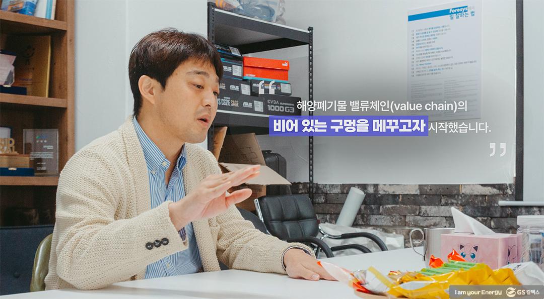 “결국 바다에 있는 것들, 어민 분들이 가치가 없다고 버리시는 것들도 저희가 가치 있게 사용할 수 있는 구조를 만드는 것이 중요합니다. 그런 일련의 과정이야 말로 제대로 된 해양폐기물의 밸류체인을 만들어 가는 일 아닐까요?”